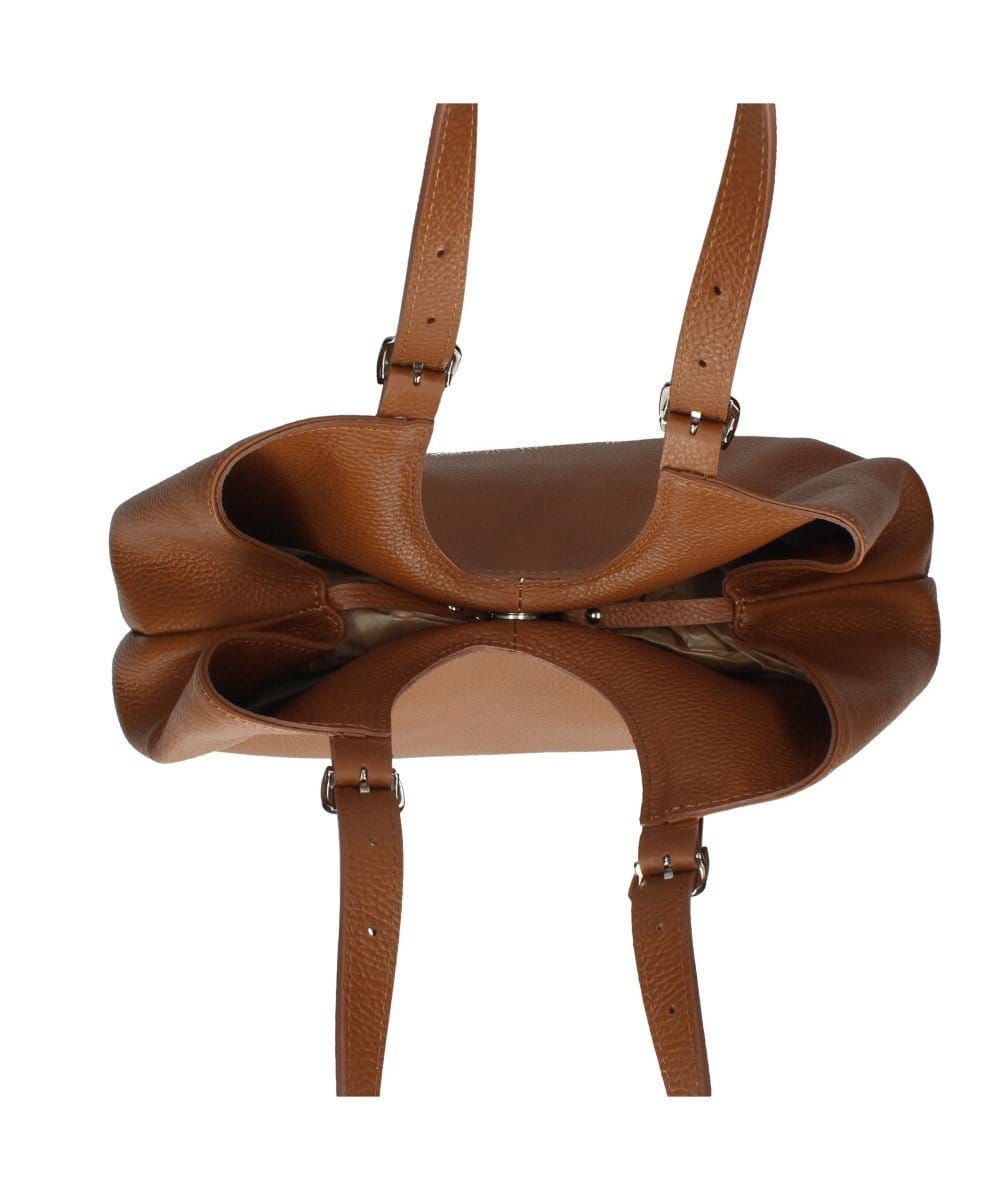 Ondanks haar royale formaat weegt de Leren Schoudertas Manuela slechts 0,8 kg, wat het draagcomfort ten goede komt. De tas is perfect voor een dag shoppen of als stijlvolle kantoortas waar je moeiteloos al je spullen in kwijt kunt. Door de aanpasbare vorm en de karaktervolle riemdetails is de Leren Schoudertas Manuela een tijdloze investering die jarenlang meegaat. Combineer haar met een strakke outfit om het volume van de tas echt tot zijn recht te laten komen.
