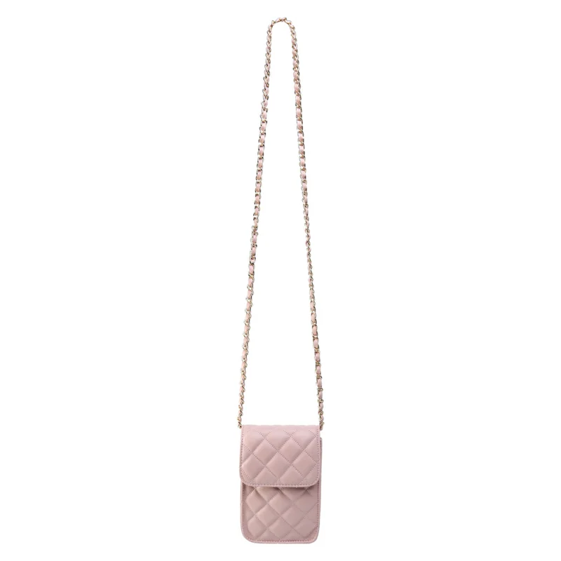 Telefoontasje-Coco-Chain-roze-pink-kleine-schoudertassen-gevoerde-schakelketting-stiksels-tassen-tasjes-festival-kopenRoze Schoudertas Coco Chain