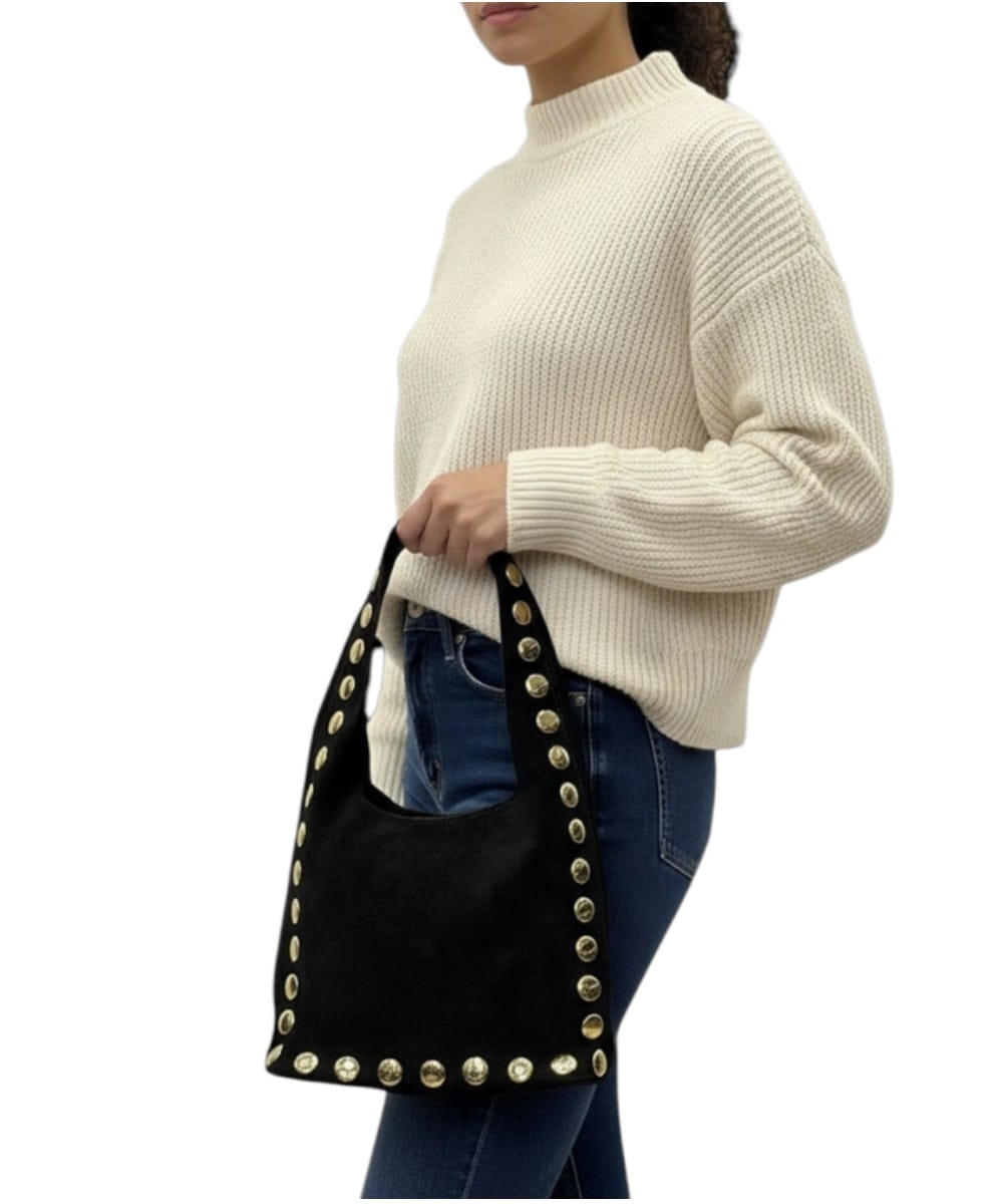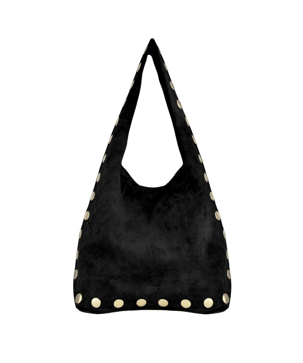 Suede Schoudertas Gouden Studs taupe trendy suede hobo tas grote gouden studs kopen bestellen zij nu-Suède Schoudertas Gouden Studs